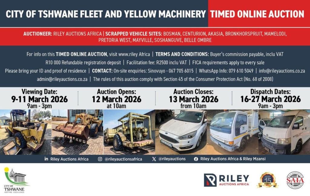 CITY OF TSHWANE TO HOST ONLINE AUCTION FOR 800 FLEET VEHICLES AND YELLOW PLANT MACHINERY