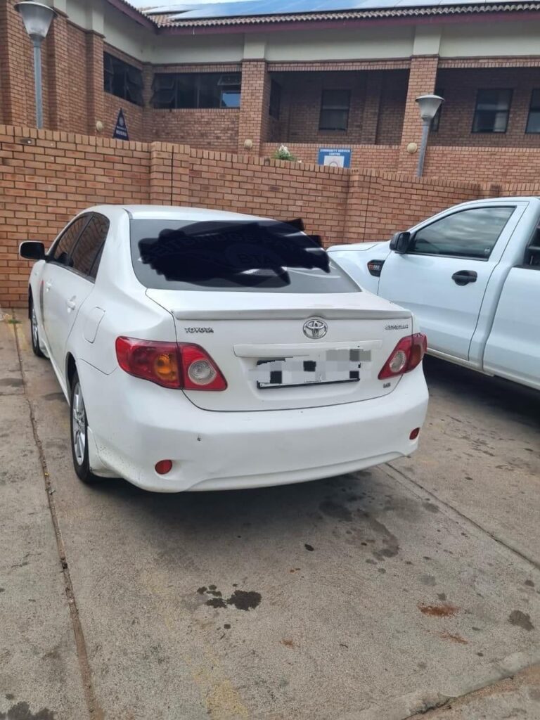 Members of the Provincial Tracking Team were travelling in an unmarked vehicle on the N1 next to the Sasol garage in Musina when they were stopped by a white Toyota Corolla fitted with white strobe lights and bearing local taxi patrol stickers.